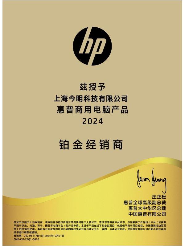 惠普商用電腦產(chǎn)品2025鉑金經(jīng)銷商
